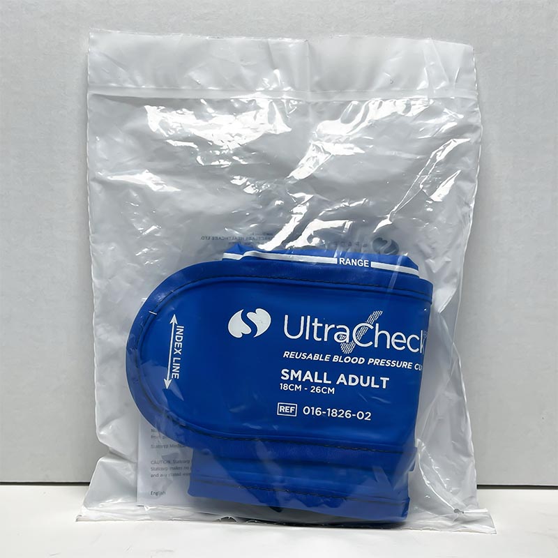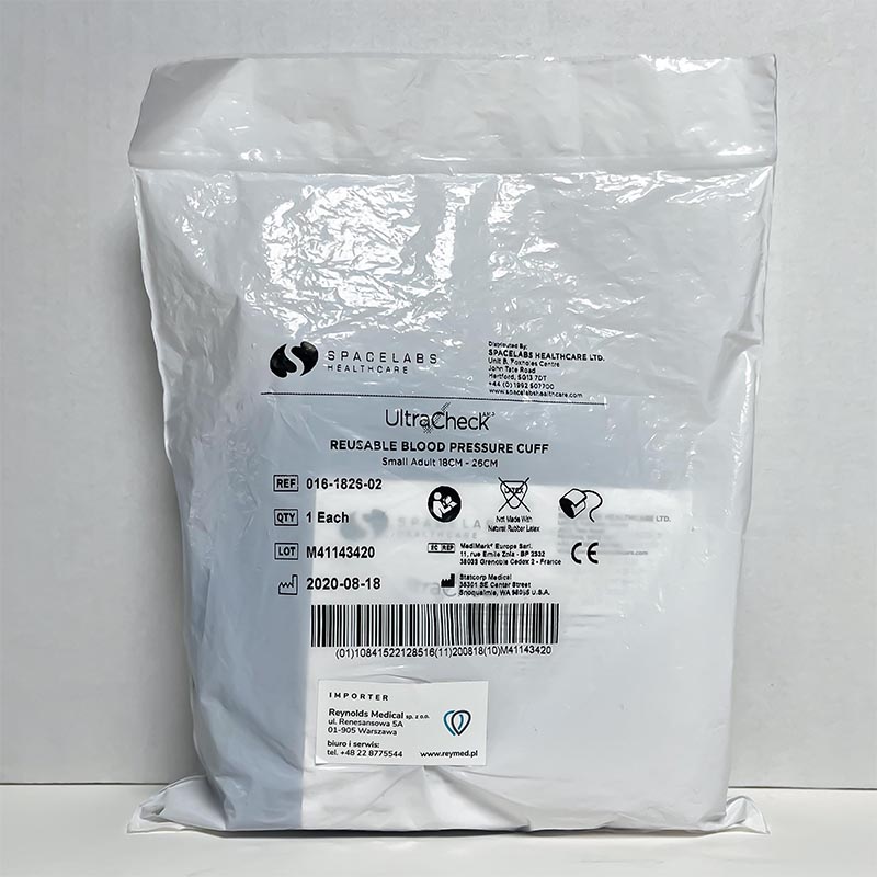Mankiet nylonowy jednoczęściowy wielorazowego użytku, ze zintegrowanym pęcherzem. Przystosowany do czyszczenia i dezynfekcji na mokro. Rozmiar 18-26 cm (S), kolor niebieski. Złącze QuickConnect.